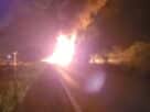 Caminhão carregado com combustível pega fogo na BR-324