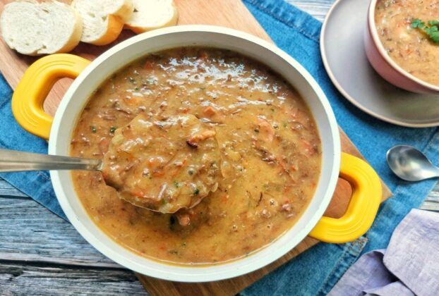 Caldo de aipim com calabresa