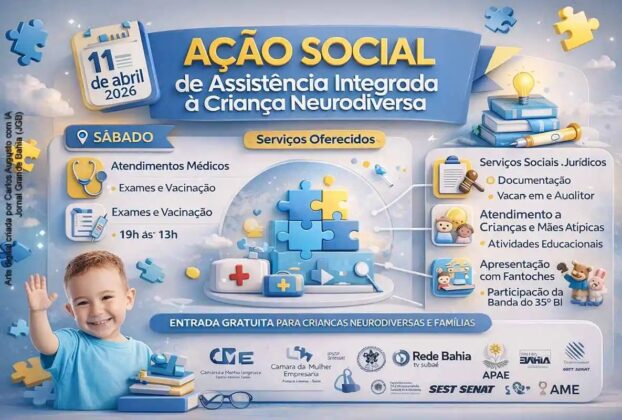 No sábado, 11/04/2026, em Feira de Santana, a Câmara da Mulher Empresária realiza a Ação Social de Assistência Integrada à Criança Neurodiversa, no Centro de Convenções, das 9h às 13h, com entrada gratuita. A iniciativa reúne uma rede de instituições e profissionais para oferecer atendimentos de saúde, orientação jurídica, serviços sociais e atividades educativas, voltados especialmente a crianças neurodiversas e suas famílias, […]