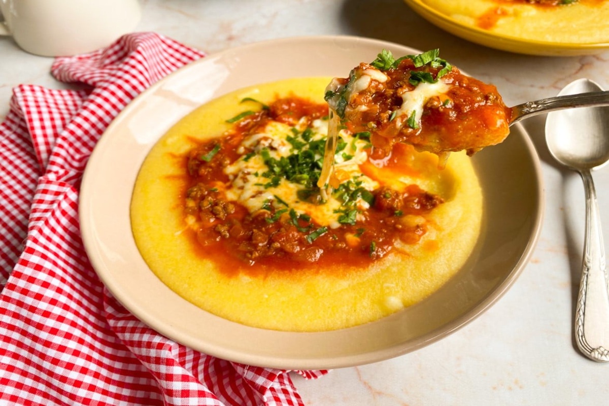O angu à baiana tem aquele sabor reconfortante, seja no almoço ou jantar. Primeiro, prepare o angu e enquanto ele cozinha e engrossa, faça o molho com carne moída para colocar por cima. Depois é só servir bem quente com queijo mussarela e incrementar com cheiro-verde.