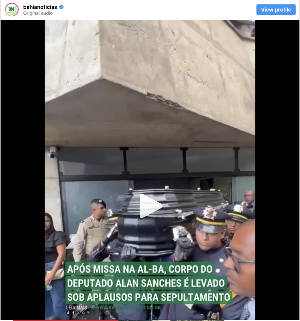 Após missa na AL-BA, corpo do deputado Alan Sanches é levado sob aplausos para sepultamento