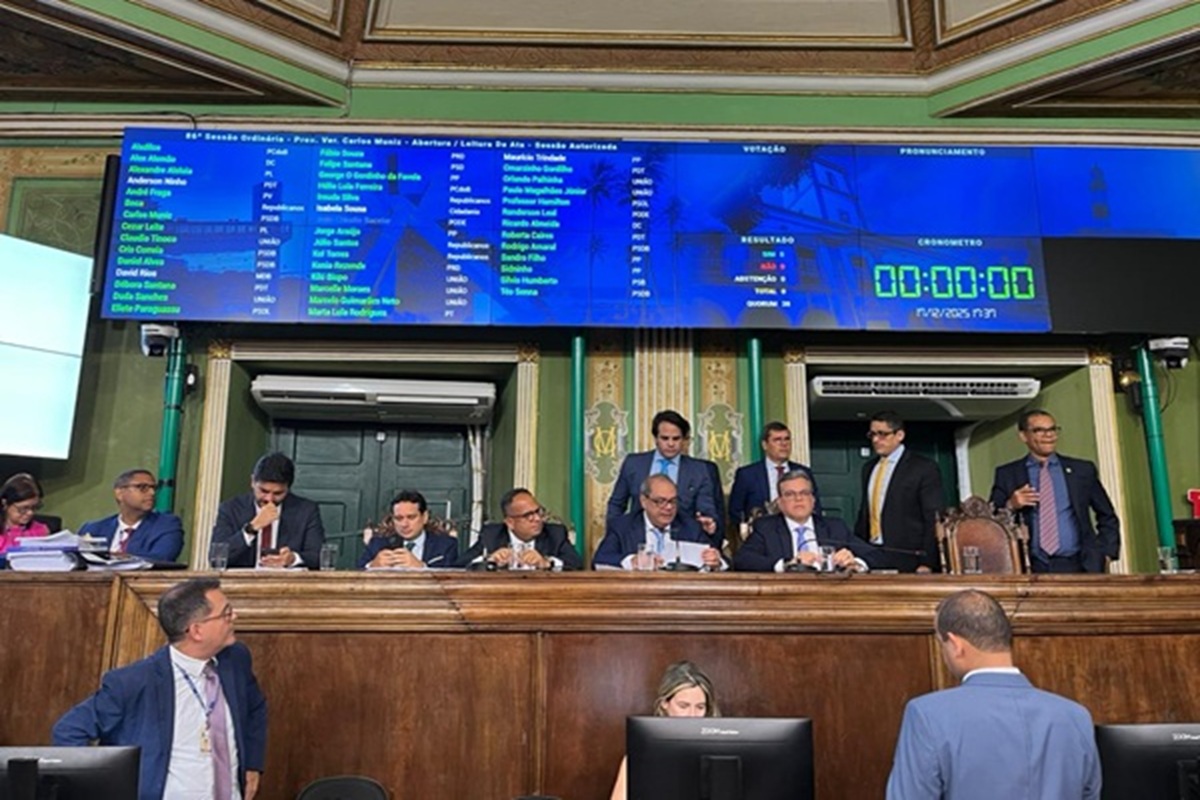 Outro projeto apreciado e aprovado pelo plenário foi o do presidente da Casa, vereador Carlos Muniz (PSDB), que concede a Medalha Thomé de Souza ao deputado federal Elmar Nascimento (União Brasil). A proposta recebeu votos contrários da bancada de oposição, mas foi validada pela maioria dos vereadores.