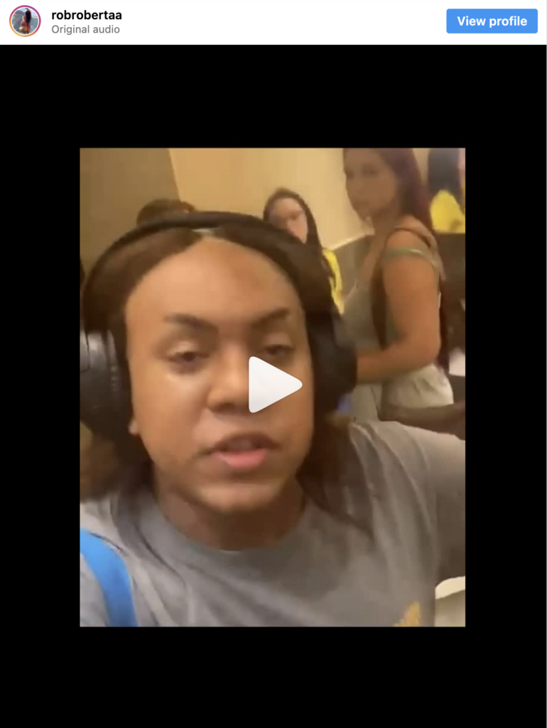 No texto, Roberta afirmou que nunca havia passado por algo semelhante e que, ao pedir respeito no banheiro feminino, foi questionada se estaria assumindo ser homem. “Minha única reação nessa situação foi pegar meu celular para gravar”, disse.