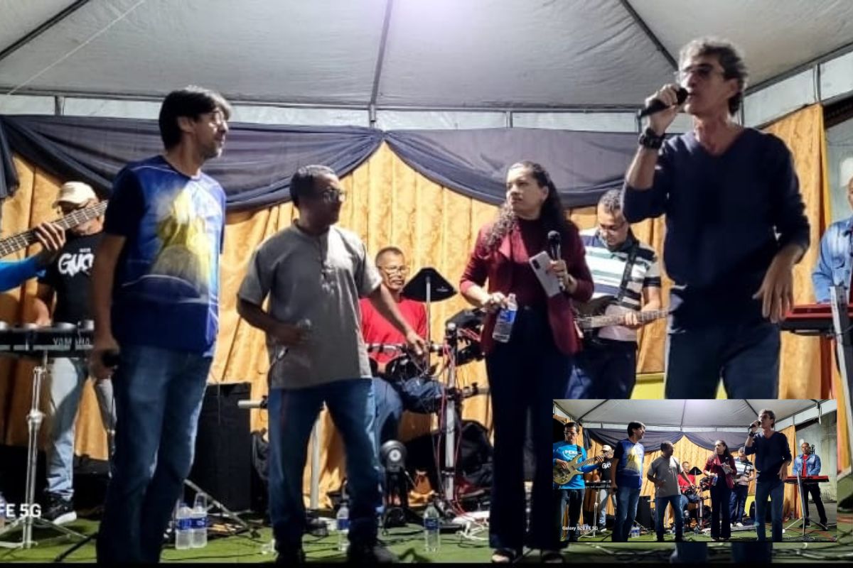 Na noite de celebração da Festa de Santana, organizada pela Igreja Católica Nossa Senhora Santana, a Banda Chão da Praça levou ao palco um repertório vibrante, homenageando os 40 anos do Axé Music. Com energia contagiante, o grupo reviveu os clássicos das micaretas dos anos 80 e 90, transportando o público presente a uma viagem nostálgica e cheia de alegria.