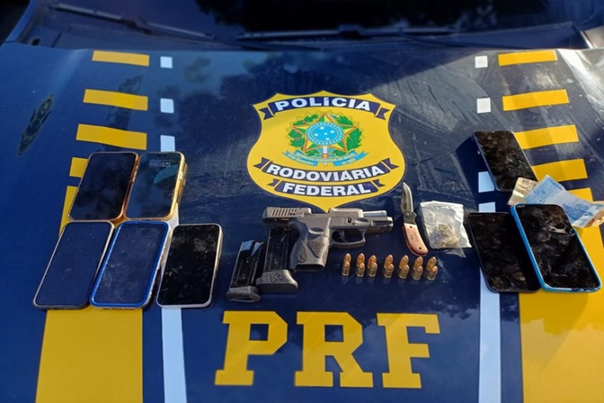 Durante uma operação na ponte sobre o Rio Jequitinhonha, em Itapebi, no Extremo Sul, a Polícia Rodoviária Federal (PRF) prendeu cinco homens e apreendeu uma arma de fogo de uso restrito, além de munições e oito aparelhos celulares possivelmente oriundos de roubos ou furtos.