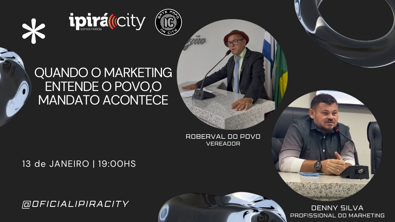 Hoje no Bate Papo na City tem dose dupla . Roberval do povo , representando a política e Denny silva representando o marketing político . E não esqueça que você também é nosso convidado , anota aí que a partir das 19:00h estaremos ao vivo , participe , compartilhe o link , sua presença e de preponderal importância .