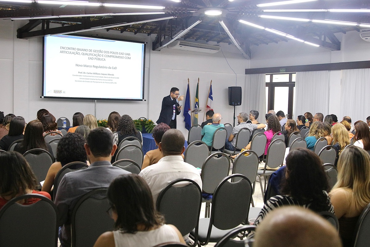 A SEC, ao coordenar os Polos Estaduais de Apoio Presencial da Universidade Aberta do Brasil (UAB) e atuar de forma articulada com os Polos Municipais e associados, busca exercer não apenas a gestão direta de unidades estratégicas, mas também cumpre sua função agregadora, fomentando a articulação entre os entes federativos, as Instituições Públicas de Ensino Superior (IPES) e os Núcleos Territoriais de Educação (NTEs). O fortalecimento da EaD na Bahia, explicou o coordenador-executivo de Programa e Projetos Estratégicos da SEC, José Bites, requer espaços formativos e colaborativos que promovam o alinhamento institucional, o compartilhamento de práticas e o aprimoramento da atuação dos coordenadores de polo.