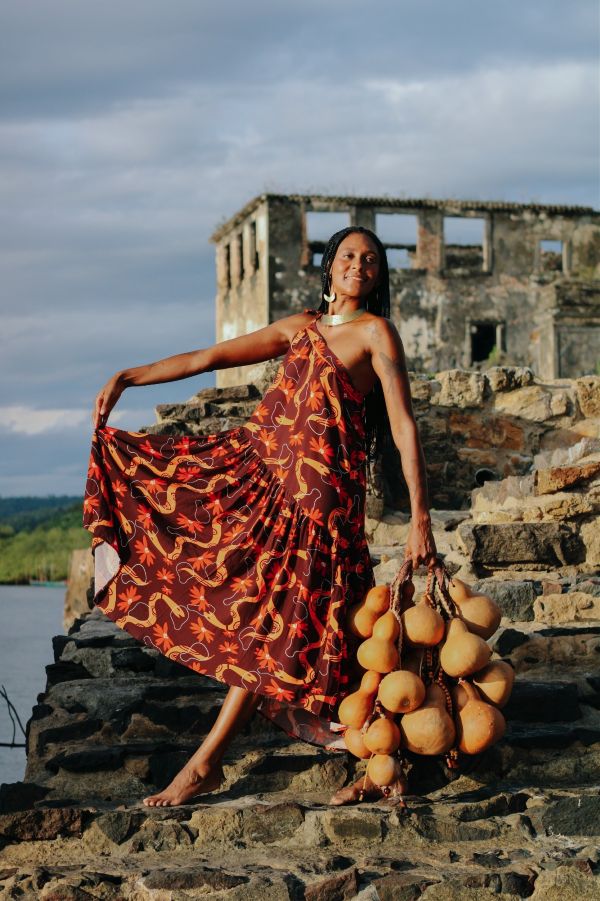 “A Coleção-Manifesto Cabaça do Mundo é moda, posicionamento, reverência, proteção. É um chamado para reconhecer o sagrado feminino como potência criadora e combater todas as formas de violência contra mulheres e meninas”, destaca Luísa Mahin.