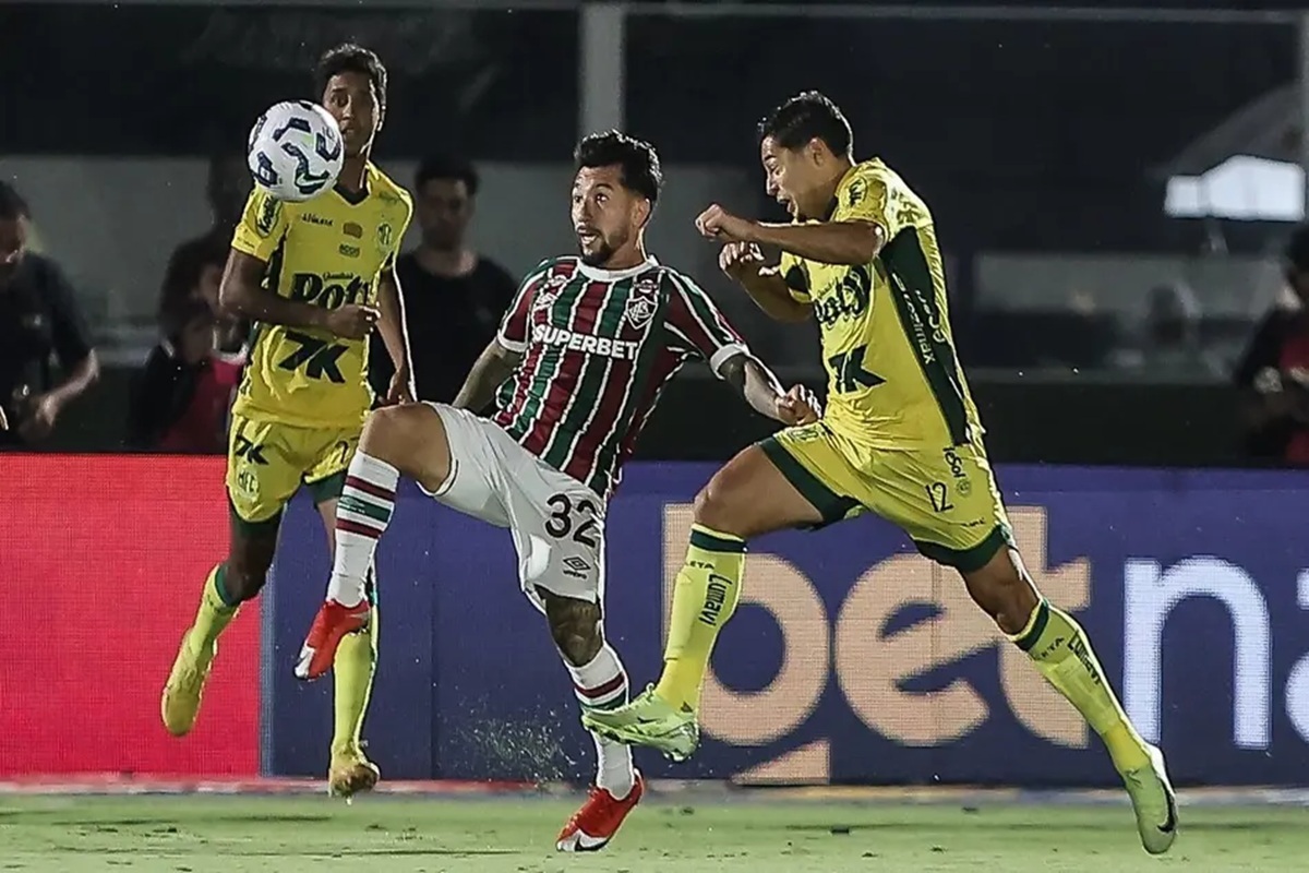 Fonte: Lance / Acosta disputa a bola em partida contra o Mirassol (FOTO: LUCAS MERÇON / FLUMINENSE F.C.)