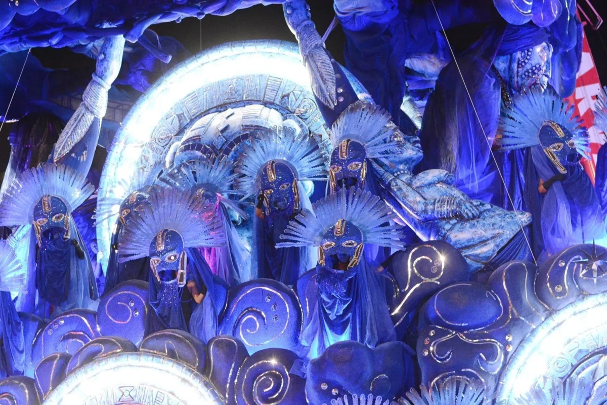 Um integrante decolou e sobrevoou os demais bailarinos durante o desfile da agremiação na Sapucaí