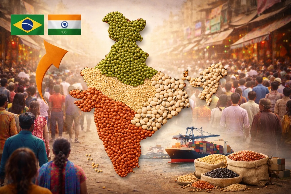Importações indianas de pulses cresceram 220% nos últimos quatro anos, chegando em 8 milhões de toneladas em 25/26