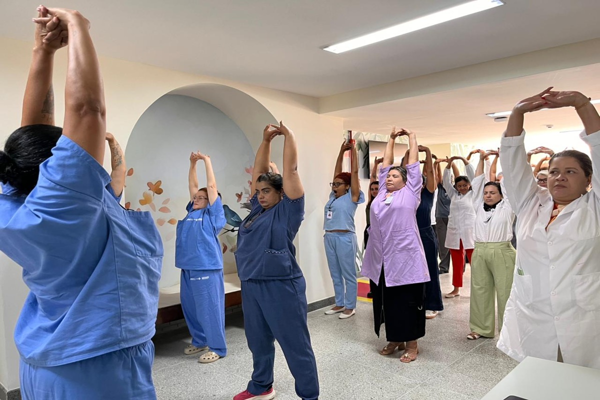 A fisioterapeuta Eneida destaca que a saúde física está diretamente associada à saúde mental, tema central da campanha Janeiro Branco. “Trouxemos a ginástica laboral e este momento de pausa porque entendemos que isso contribui para a qualidade de vida no ambiente de trabalho. Realizamos exercícios respiratórios e alongamentos, aproveitando a pausa entre os plantões para proporcionar um momento de cuidado da equipe consigo mesma e com o outro”, afirmou a profissional. Ela reforçou ainda que os colaboradores, que diariamente cuidam dos pacientes, também precisam lembrar da importância de cuidar de si.
