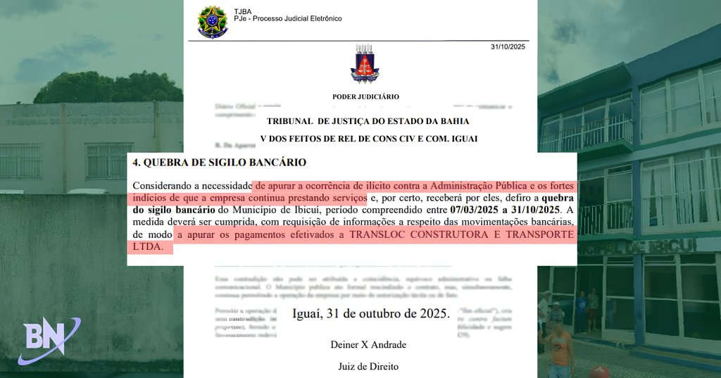 A decisão judicial ainda impôs uma multa diária de R$ 10 mil à administração municipal em caso de novo descumprimento, reforçando a seriedade da determinação. Por fim, o magistrado autorizou a quebra do sigilo bancário da Prefeitura de Ibicuí para investigar se houve pagamentos à ‘Transloc’ após a proibição judicial de sua operação.