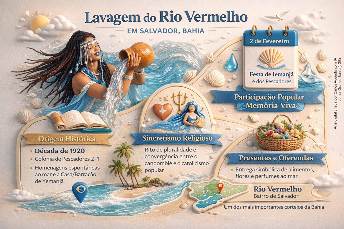 O 2 de fevereiro, consagrado como Dia de Iemanjá em Salvador, tem no Rio Vermelho seu principal território simbólico. Foi nesse bairro que a prática de levar presentes ao mar se consolidou, inicialmente entre pescadores, e posteriormente incorporada por amplos setores da sociedade.