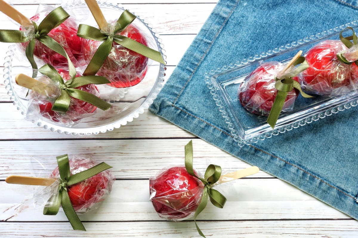 Para banhar na calda, as maçãs devem estar em temperatura ambiente.