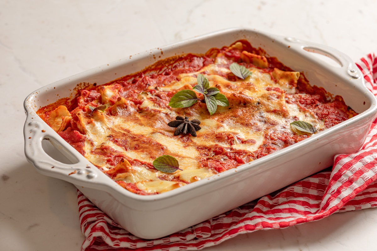 Esse é aquele tipo de massa para ser saboreada a cada nova camada apresentada! Para isso, contamos com os raviolis, mais um molho vermelho e uma finalização de creme de leite fresco e parmesão capazes de deixar qualquer um com água na boca.