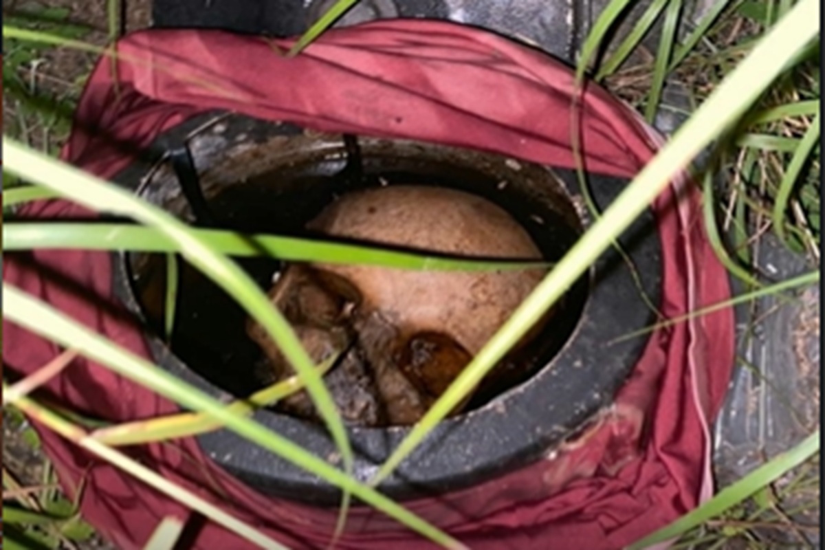 Um achado macabro intrigou quem passava pelas proximidades de um conhecido motel da região na tarde desta sexta-feira (20). Um crânio humano foi avistado dentro de uma panela de pressão, abandonada em uma área de vegetação lateral à estrada.