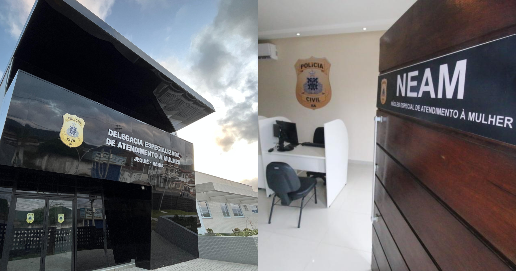Imagens da Deam de Jequié e de um Neam na Bahia | Fotos: Reprodução / Haeckel Dias / Alberto Maraux