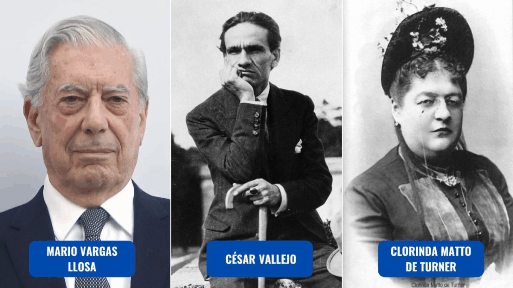 Na literatura, o Peru é berço de nomes renomados como Mario Vargas Llosa, escritor e ganhador do Nobel de Literatura, cujas obras abordam temas sociais e políticos do país. César Vallejo, poeta revolucionário e inovador, cujos versos profundos marcaram a poesia mundial. E Clorinda Matto de Turner, pioneira no romance indigenista, que trouxe à tona as questões dos povos indígenas através de suas obras.