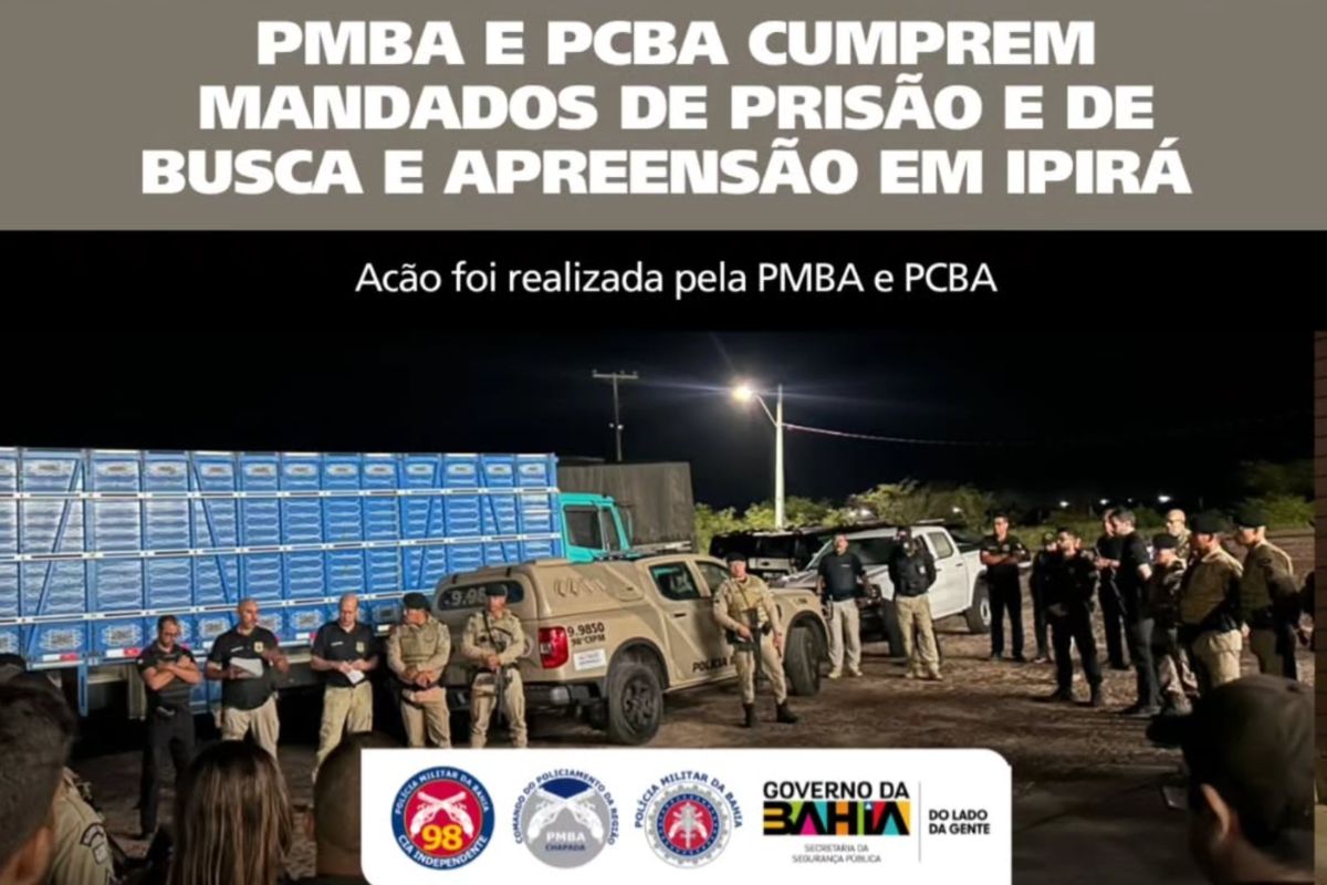 A ação resultou no cumprimento de oito mandados de prisão e 12 mandados de busca e apreensão, todos expedidos pela Vara Criminal da Comarca de Ipirá após investigação conduzida pela Delegacia Territorial do município.