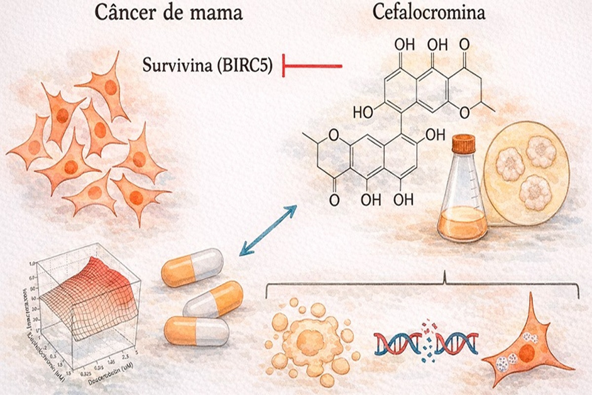 A cefalocromina, substância isolada a partir de um fungo da espécie Alternaria sp., mostrou-se ativa contra células de um tipo de câncer de mama agressivo, indicando importante potencial antineoplásico. Quando combinado a quimioterápicos comumente utilizados no tratamento da doença, o composto ainda intensificou a ação dos medicamentos. O artigo que apresenta estes resultados foi publicado na revista científica Journal of Natural Products por pesquisadores do Instituto de Ciências Biomédicas da USP (ICB-USP).