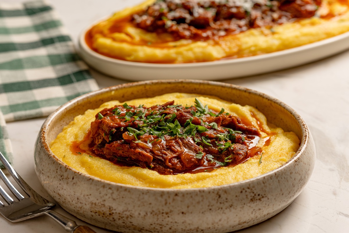O ragu de fraldinha é um dos preparos mais versáteis da cozinha. Aqui, ele ganha ainda mais destaque ao lado de uma polenta cremosa e cheia de sabor. Ideal para dias mais frios ou para quem busca variar o cardápio com uma combinação aconchegante e irresistível.