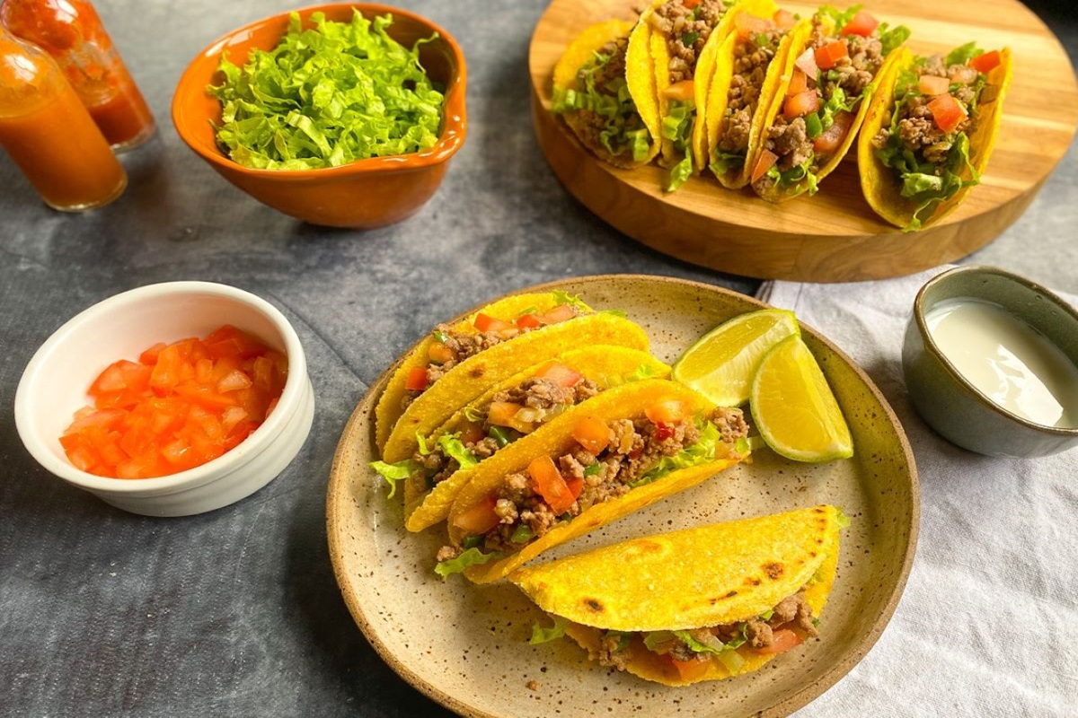 É dia de culinária mexicana! Vamos preparar tanto as tortilhas, feita com uma massa sequinha e crocante, quanto o recheio, que fica levemente apimentado. Entretanto, quando o assunto é tacos, pimenta nunca é demais. Pode acrescentar outros condimentos e fazer sua seleção de molhos preferidos.