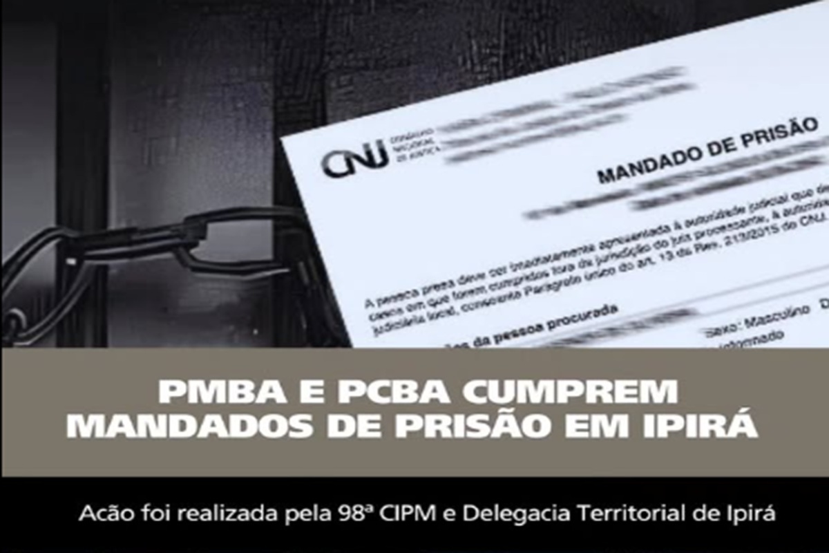 Ação integrada: Polícia Militar e Polícia Civil cumprem mandados de prisão em Ipirá