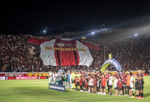 Praticamente garantido na Série A, o Vitória entrou em campo neste domingo (5) e empatou em 1 a 1 com o Vila Nova, no Barradão, pela 35ª rodada da Série B. A festa da torcida contou com mosaico, músicas de apoio e uma leve provocada no arquirrival Bahia.